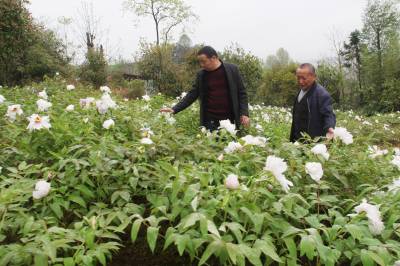 牡丹花开添笑颜 3月31日,王承远正在与村干部交流牡丹生长情况。 王承远是建始县长梁镇瓦子院村建档立卡的贫困户,在完成脱贫摘帽后,他又在湖北珍稀丹油生物科技有限公司的支持下,学习油用牡丹栽培管理技术,与周边的村民一起发展油用牡丹200亩。牡丹花开,不仅给村头增加了一道风景,更是给村民们带来了增收的希望。(湖北日报 唐旻 颜彬 黄庭兵)