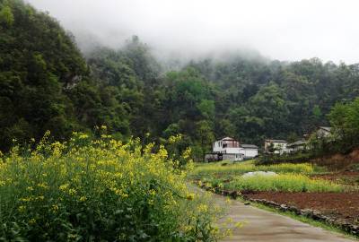 十堰赛武当在春雨中,云雾缭绕在的山水之间蜿蜒起伏时隐时现,白墙黑瓦点缀在绿水青山之间,小溪中鸳鸯戏水,油菜花上蝴蝶翩舞,好一幅田园画卷!