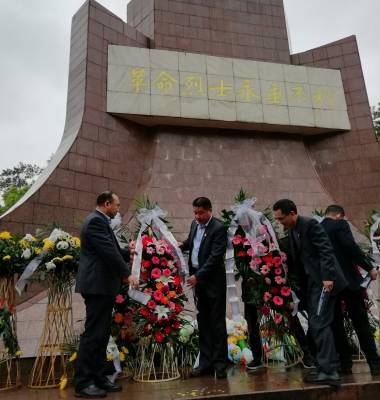 4月2日,农行京山市支行干部员工冒雨来到京山市烈士公园清明祭扫,开展党史学习教育主题实践活动。分别在烈士纪念碑前和共和国开国领袖毛泽东双儿女亲家、革命老人张文秋墓前敬献花篮,凭吊革命先烈、缅怀革命老人,并重温入党誓词,决心团结一致,弘扬新时代主旋律,全心全意为人民服务,