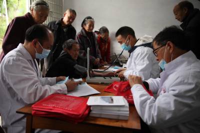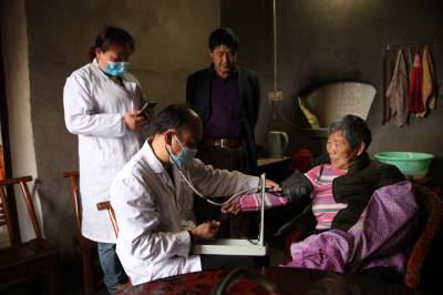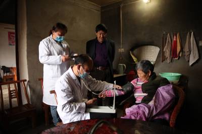 为方便山区群众在家门口享受到便捷的医疗与健康服务,4月14日,金果坪乡第7家庭医生签约团队的4名医务人员正在该乡沙岭村三组郑清华家为该片区的1-6岁儿童、孕妇和65岁以上老年人进行健康体检,开展签约医生送医下乡活动。