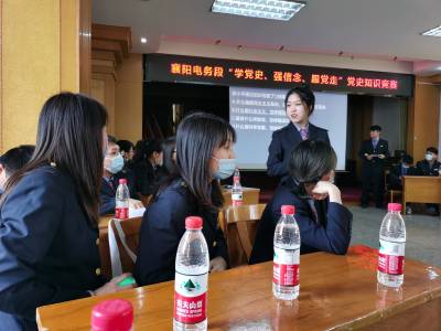 党史知识竞赛(图) 4月13日,中国铁路武汉局襄阳电务段举办了“学党史、强信念、跟党走”党史知识竞赛,18支参赛代表队进行了激烈角逐。通过预赛中的“小试牛刀”的必答和“争分夺秒”的抢答后,6支代表队进入决赛;最终,襄阳东客专电务车间代表队在决赛中,通过“争分夺秒”的抢答和“一站到底”对抗后喜获冠军。 图为党史知识竞赛现场。(视界网 王樊明 摄)