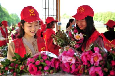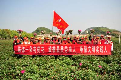 2021年4月15日,在“五一”劳动节即将到来之际,宜昌市夷陵区“送你一束芍药花 致敬最美劳动人 争做文明实践人”活动在龙泉镇雷家畈村中药材合作社基地启动,当地新时代文明实践志愿服务者踊跃加入芍药花采摘及包装队伍,并陆续将一束束鲜花送到公安民警、环卫工人、医护人员等坚守基层一线岗位的劳动者,以及在田间辛勤劳作的农民手中,向他们致以劳动节日的问候和美好的祝愿。