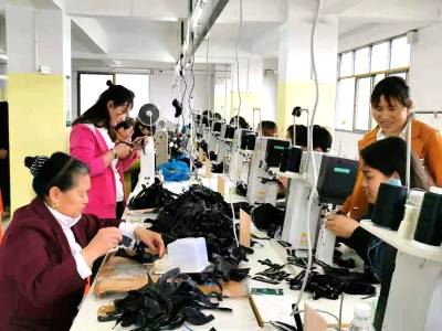 4月16日,位于巴东县官渡口镇学苑路的烨州鞋业有限公司正式开业,30余名留守妇女工人正在加工鞋面。