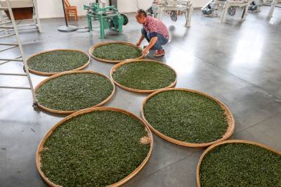 “制作好茶的加工规程很讲究,茶叶从山上摘下来交到车间里来,不是很多人理解的简简单单的把茶叶烘干过后再拿下来放冷就行了,而是要经过摊青、杀青、摊凉、压捻、烘青、整形、干燥等工序,就连摊凉冷却时间都明确定时到多少分钟,要这样经过多道制作,才能算成。”黄荆塘村茶叶专业合作社的制茶师傅杨孝靓告诉记者,这样精细制出来的茶叶无论是香、色、形,还是富含的氨基酸和茶多酚等品质都很不错。