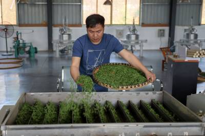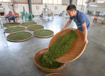 日前,走进黄荆塘村茶叶专业合作社的制茶车间,一股茶叶清香迎面而来,制茶师傅们正忙着抓住当前四月产茶季节炒制绿茶。