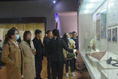 随后,进入陵园内革命文物陈列馆,跟随讲解员参观了大道会革命军颁发的委状、共产党员陈子杰用过的佩章、贺龙亲手制作的体育用具――石担、鼓锣山红军32烈士殉难遗物――步枪碎件、刺刀等167件革命文物。