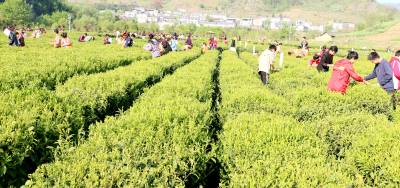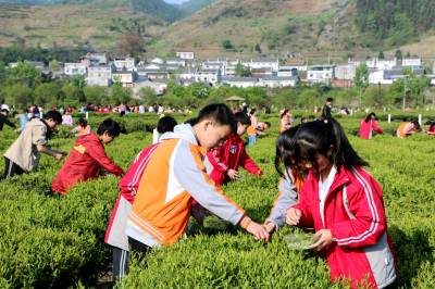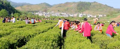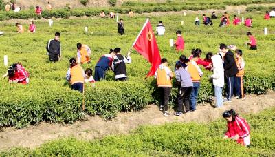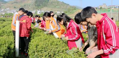 4月19日,竹山县竹坪中学七八年级470余名学生在老师的带领下,来到了学校附近的茶园,开展“传承茶文化感悟劳动美”劳动教育实践活动。 本次活动安排了“赏茶、采茶、聊茶、制茶”等学习内容。让学生在亲身实践中,感受到了中国茶文化的独特魅力。(视界网 张云朝 周鹏摄)