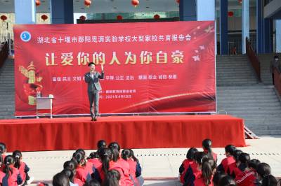 家校共育促成长。4月19日,郧阳思源实验学校在中心操场举行了《让爱你的人为你自豪》主题励志感恩报告会。善朝教育集团金牌讲师、中国学生心理成长网高级签约讲师、青少年演讲口才训练师、善朝教育集团事业合伙人杨景谕作主题报告,报告分珍惜生命、感恩老师、感恩父母三部分,3000余名师生、家长参加了报告会。图为感恩老师的场景。