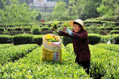 2021年4月17日,宜昌市夷陵区太平溪镇落佛村生态茶园迎来忙碌采茶期,茶农赶在谷雨前采摘春茶。今年4月20日是二十四节气中春季最后一个节气“谷雨”。民间有“清明见芽,谷雨见茶”的说法。谷雨时节,气候温暖湿润,小芽迅速长成鲜叶,是采茶制茶的大好时机。(视界网 张国荣 摄)