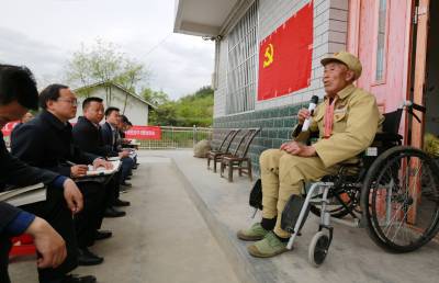 “抗美援朝战争中,我担任通讯班班长。在一次敌机轰炸中,12名通讯战士都壮烈牺牲,我在这次袭击中身负重伤。当我清醒过来的时候,我发现身边躺的都是我的战友啊,可是他们醒不过来了,我是代表战友活下来的,我的命永远属于党和国家。我的很多战友永远留在朝鲜,他们才是真正值得敬佩的英雄!”4月19日下午,在竹山县宝丰镇东河村抗美援朝老兵熊德和家,荣获2020年度十堰市“最美退役军人”称号的熊德和为宝丰镇80余名党员干部宣讲党史时,提及这段往事,潸然泪下,情难自抑,他对战友深切的眷念、对党和国家高度的忠诚无不生动书写着这位老英雄的热血豪情。