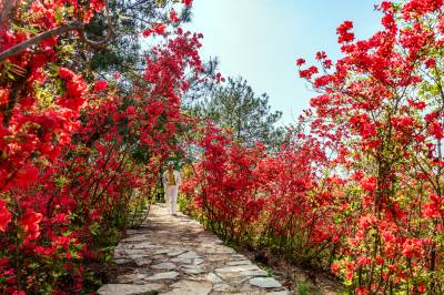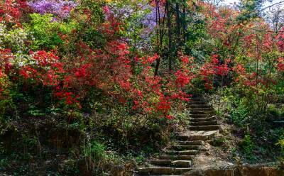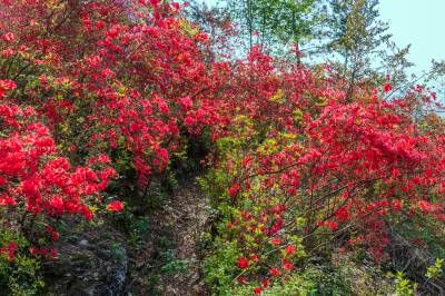 夷陵区金刚山杜鹃花正在盛开。距离宜昌市26公里,从宜昌出发往兆吉坪村委会右转上山走乡村公路5公里就到了金刚山,漫山遍野的杜鹃,花团紧簇相拥,灿若云霞,蔚为壮观。