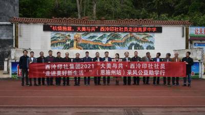 4月18日,浙江省杭州市西湖区西泠印社集团到恩施州宣恩县高罗镇初级中学、清水塘村开展艺术公益慰问金捐赠、乡村文化采风考察等活动,现场捐赠公益助学金10万元,艺术家捐赠珍贵墨宝作品7副,捐赠图书100册。