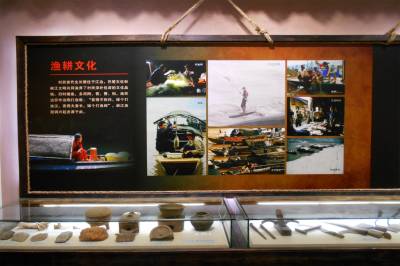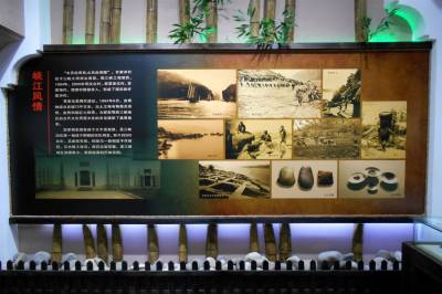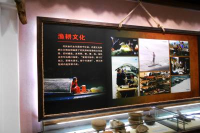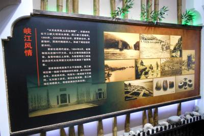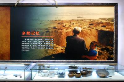 许家冲村移民陈列馆前言部分主要对展馆进行总的概括。“峡江风情”“渔耕文化”展区展现了许家冲村的由来。现在的许家冲村是由原来的许家冲、西湾和覃家沱三个村合并而成。覃家沱周代遗址共出土从新石器时代到明清时期的文物一万多件,其中一部分陈列于此馆之中。“乡愁记忆”展区画面中的老人是库区移民韩启松,小孩是其外甥杨杰。画中场景老人流露出对故土和过往的依依不舍,小孩流露出对新家园和未来的期盼憧憬。