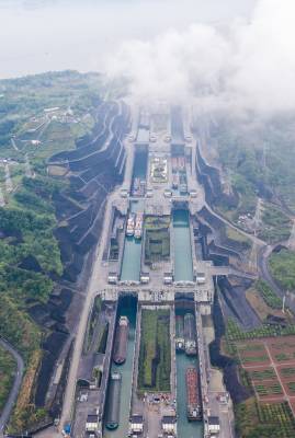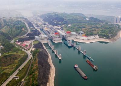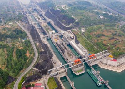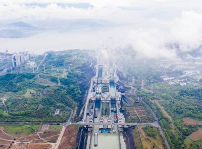 三峡枢纽双线五级船闸,是目前世界上规模最大、连续级数最多、水位落差最大、技术最复杂的船闸。自2003年6月通航至2020年底,累计货运量达15.38亿吨。