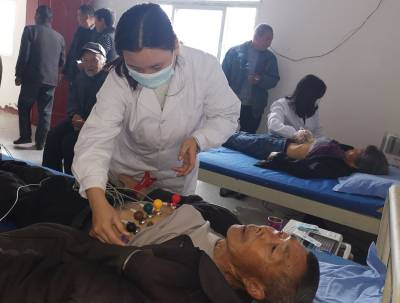 4月21日上午,郧阳区谭山镇卫生院组织医务人员到高杨村为老人免费体检。计划用三个半天的时间,对全村150多名65岁以上老人,进行抽血化验、量血压、测心电图等十多项检查。近年来,郧阳每年都组织乡镇卫生院下乡为老人们进行体检,并一一建立健康档案,守护群众身体健康。