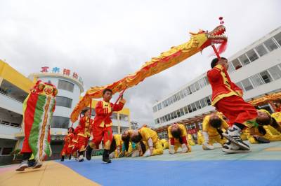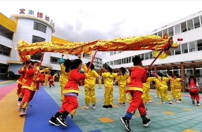 舞龙是我国传统文化的载体之一,同时也是中华民族传统体育的重要组成部分,蕴含着深厚的文化基础,是民族精神的体现,在幼儿园开展舞龙不仅具有深刻的文化传承意义,同时也是深化教学改革、丰富校园文化生活、提高团结协作精神的内在要求,该园组织开展“民间舞龙进校园,传统文化助成长”主题教育活动,不仅让幼儿感受了艺术气息,传承了民间文化,还锻炼了幼儿的体格能力,愉悦身心,培养了幼儿团结合作意识,让孩子们在阳光下自由呼吸、健康成长。