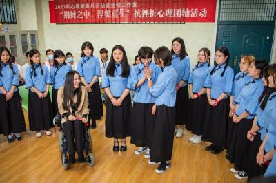 2021年4月21日,湖北经济学院法商学院心理健康中心举办的“荆棘之中、涅槃重生”抗挫折心理团辅活动中,全国道德模范、国家二级心理咨询师、该校德育导师董明结合同学们学习生活中的困难与挫折,通过讲述党的百折不挠奋斗史,勉励同学们不要害怕历经坎坷磨难和严峻考验,坚定理想信念,勇担时代责任,增强前进勇气,奋力砥砺前行。湖北经济学院法商学院董明工作室积极探索党史育人与心理育人相结合的育人育心模式,通过开展“成长三部曲”和“穿越时空的对话”等沉浸式团辅游戏,让学生现场体验到成长中的失落与奋斗、挫折与成功,感悟百年前青年革命先辈应对挫折和挑战的精神和力量,为学生铺就红色育人育心路。