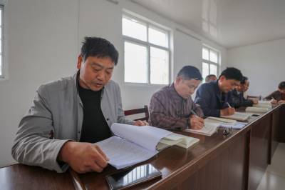 4月21日,记者在倒店乡罗范村的村委活动室里看到,倒店乡党委书记郭小波正在参加所驻村的党史学习教育。
