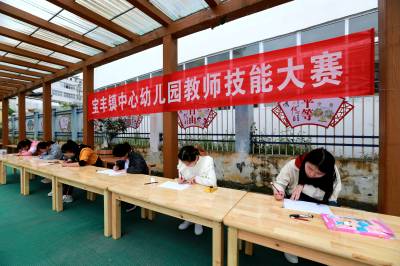 4月21日,湖北省竹山县宝丰镇中心幼儿园举办教师基本功大赛,比赛分“教育教学理论与实践”和“专业技能技巧”两个方面,教育教学理论与实践即说课,专业技能技巧即才艺展示,主要体现参赛教师个人基本功水平,包含绘画、声乐、舞蹈、琴法、语言表达、案例分析等,这是宝丰镇教师“打擂”强“内功”的一个缩影。