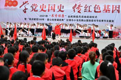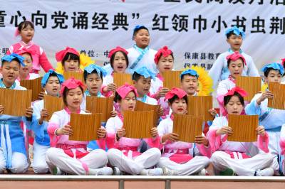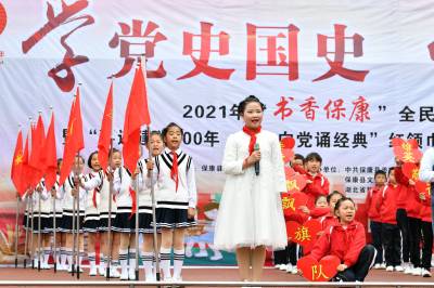“书香保康”全民阅读月活动由保康县新时代文明实践中心主办,保康县委宣传部、县教育局、县融媒体中心、县文化和旅游局、县新华书店等单位承办。活动以“学党史国史 传红色基因”为主题,在全县启动2021年“书香保康”全民阅读月活动,开展“喜迎建党100周年•童心向党诵经典”红领巾小书虫荆山楚韵读书节优秀节目展演。(视界网杨韬 黄丽摄)