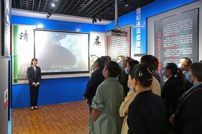 为筑牢预防腐败的家庭防线,推进党风廉政建设,湖北省恩施市纪委监委部署开展全市党员领导干部警示教育月活动,以座谈会、观看警示教育片和参观反腐倡廉警示教育基地的形式,分批次组织全市1000余名党员领导干部及家属接受廉政警示教育,引导党员干部知廉倡廉,守牢廉洁底线,激励干部家属发挥好宣传员、监督员、守门员作用,当好家庭的“纪委书记”。图为2021年4月22日,恩施市城管系统领导干部及家属跟随讲解员参观反腐倡廉警示教育基地。