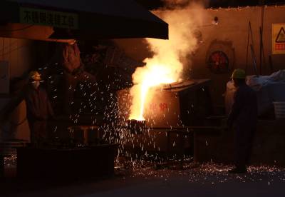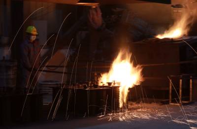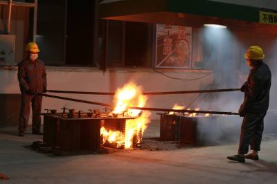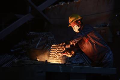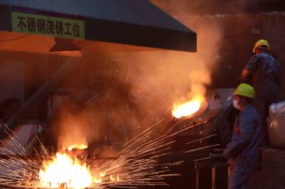 4月22日晚11时,在竹山县宝丰卫浴产业园的湖北安竹卫浴有限公司不锈钢浇铸工位,工人们正加班加点赶制产品,确保完成国内外订单。
