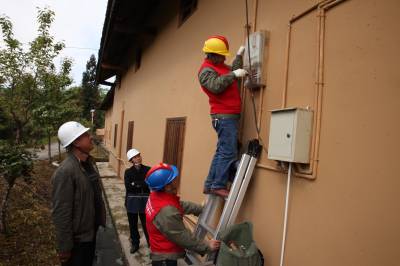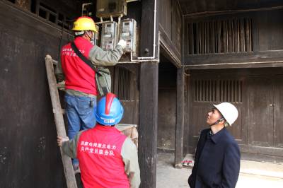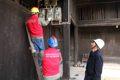 4月22日,国网巴东金果坪供电所党员服务队正在红色景点贺龙旧居检查用电线路,排查用电安全隐患。