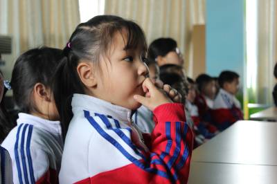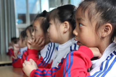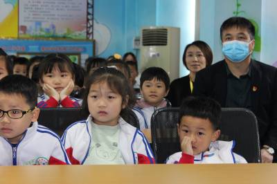4月25日上午,英山县县直机关幼儿园大班的孩子们正在聚精会神观看爱国主义教育影片《闪闪的红星》。