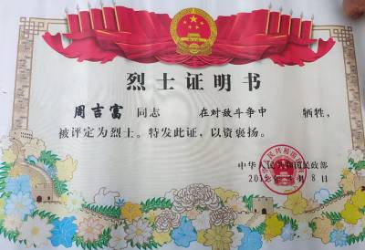 周建林的爷爷周吉富当年被土匪活埋牺牲时只有30岁,周建林的父亲周成生排行老二,当时才出生100天,奶奶后来改嫁,上世纪70年代家里收到了县民政局送来的烈士证书。2015年4月8日,后来撤县设区的郧阳区民政局又给换发了国家民政部的烈士证书。每年清明节上坟时周建林的父亲周成生一家都为找不到父亲周吉富牺牲的遗骨安葬地而发愁,亲戚们先后多次到高庙东浪河激战地寻找都无果而返。那时交通不便,信息不灵,仅一靠一双腿到东良河去找,父亲对此念念不忘,后来抱着遗撼先后病故。
