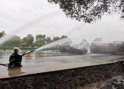 经现场了解,货车及油罐车司机等人在起火时已快速逃离现场,油罐车内装有约20吨左右的汽油。根据现场情况,现场救援指挥部制定了“交通管制、动态监测、冷却抑爆、输转倒罐、起吊转移”的处置方案,从四个方向架设水枪阵地,用水枪和高压、大流量的移动水炮对罐体进行不间断、全方位稀释冷却,防止爆炸。同时,调集10名消防救援人员利用泡沫管枪消灭公路右侧的流淌火和大货车明火。下午3时31分,火势得到控制,明火熄灭。随后,在水枪掩护下,相关部门对罐体内的剩余汽油进行输转倒罐,由于处置及时,事故未造成人员伤亡。当晚7时40分,该路段交通恢复正常。(王积欢、王方)