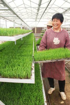 5月7日,老区谷城县农科所工作人员在育秧工厂管理秧苗。近几年来,该县坚持育秧工厂化,管理科学化,秧苗商品化,为全县种粮大户、农民科学种田,提高水稻产量当好“田保姆”。马明刚摄
