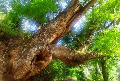 据黄英业的妻子王成秀介绍,她18岁嫁到黄家的时候就有这棵古树,梨树枝繁叶茂,结的梨又香又甜,在黄家生活了5年才发现从梨树中间长了一棵黄连木,那时候黄连木只有大拇指粗。79岁的黄英业老人满脸自豪地回忆道,他爷爷曾告诉他这棵梨树还有一段传奇的典故,据说熊光文当年率领“五抗军”曾在这棵树下打过仗,在抵抗国民党保安团围剿时发生激战,密集的子弹穿过树干造成难以愈合的伤痕,留下的空隙给后来的黄连木的生长造就了机缘。