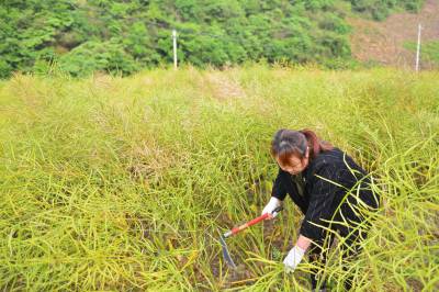 2021年5月10日,竹溪县村民正在水坪镇田垭村收割油菜。竹溪县水坪镇是竹溪县的粮油生产重镇,有“竹溪粮仓”美称。村民抢抓晴好天气趁早收割油菜,确保夏收粮油颗粒归仓。
