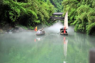 三峡人家是国家5A级旅游景区,位于长江“两坝一峡”(三峡大坝、葛洲坝和西陵峡)核心区域,有着“一肩挑两坝、一江携两溪”的独特地理环境,景区内有石、瀑、洞、泉等多种景观元素。作为宜昌一张闪亮的旅游名片,三峡人家不仅拥有优美的生态环境和独特的自然景观,还完善丰富了峡江文化内涵,并传承保护了众多非遗演艺项目。