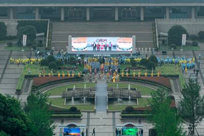 湖北秭归:外国游客乐游屈原故里