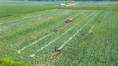 嘉鱼平安洲抢收外销包菜