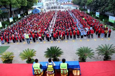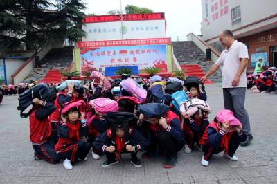 上午8时,演练活动开始,警报响起,柳陂镇中心小学校长下达命令“柳陂镇中心小学突发地质灾害,请同学们迅速撤离到安全地带。”在学校老师指导下,学生们头顶书包安全、有序、快速撤离到学校操场的安全地带,整个演练过程只用了5分18秒。