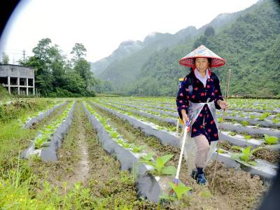 本报讯(通讯员:潘家文 邓婷)5月22日,村民正在来凤县大河镇马家坝村6组种烟大户张有权的烤烟地里冒雨抢施钾肥给烟苗补充营养。