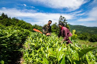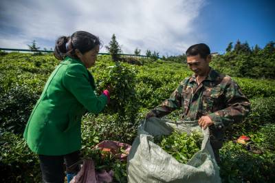 经过学习探索,张道富和妻子一起学会了茶园管护、茶叶采摘、茶叶制作等技术,并在当地打开市场。目前,张道富的茶园面积发展到25亩,年产值12万元。张道富在自己发展茶园的同时,不忘带动村民一起致富。在张道富的带动下,双湾村茶叶种植面积达1400余亩,户均4亩、人均1亩茶园,带动茶农人均年增收8000元以上。(视界网 章磊 方建华 摄)