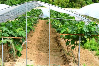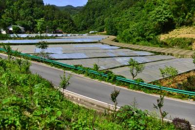 2021年5月24日,建设发展中的竹溪县水坪镇田垭村李子葡萄产业园美如画。