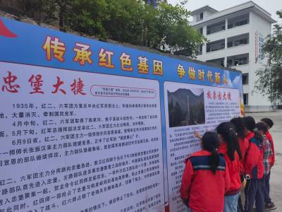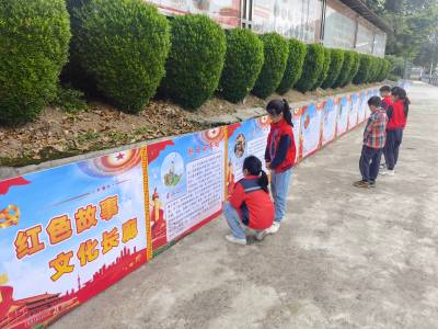 5月25日,宣恩县高罗镇中心小学校园文化墙旁,小学生们正在阅读红色经典小故事。 为了进一步推进党史学习教育进校园,该校充分利用校内文化墙、黑板报、走廊、楼梯、花坛等宣传阵地,精心张贴了《板栗园大捷》《忠堡大捷》等红色革命故事30余个,书写了“红船精神”“延安精神”等黑板报8块,“学党史、听党话、感党恩、跟党走”等宣传标语视觉冲击大,常态化滋润全校1680余名师生,传承红色基因,党史宣教形式活、氛围浓、受欢迎。(刘玉池 王恕森)
