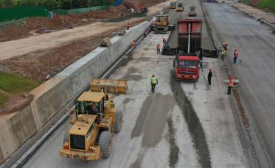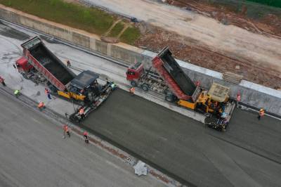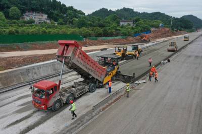 5月25日宜昌市港窑路西陵区峡州大道至夷陵区东方大道路段2台摊铺机,3台压路机,1正在进行公路上基层最后的铺筑,铺油工程仅剩最后300米。