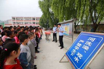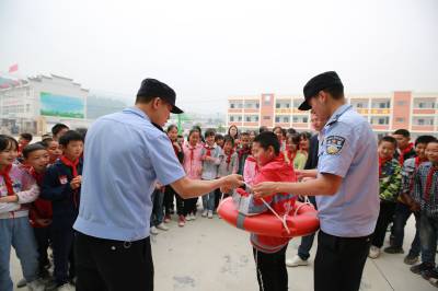 “不私自下水游泳;不擅自与他人结伴游泳;不在无家长或教师带领的情况下游泳••••••” 5月25日,湖北省竹山县宝丰镇中心学校联合宝丰派出所在曹家湾小学开展了“珍爱生命,预防溺水”安全教育活动。民警通过组织学生试穿救生衣、试用救生圈等环节,现场向学生传授防溺水知识,并结合现实生活中的溺水案例,告诫学生要远离河道、水库等危险水域。