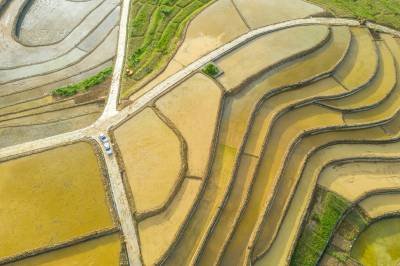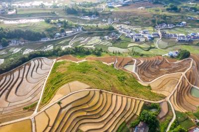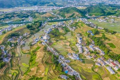 2021年5月24日在竹溪县中峰镇松树沟村拍摄的致富路绕村入户,畅通田野,气象万千,乡村振兴的画卷。