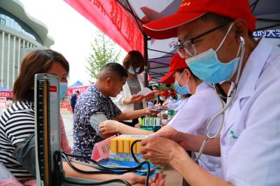 5月26日,竹山县疾控中心、城关镇卫生院等单位医护人员走进城关镇南门村秦巴文化艺术中心广场,为居民提供量血压、测血糖等义诊和咨询服务,指导居民养成健康生活方式,防治疫情和各类疾病的发生。当日,该县2021年科技活动周启动,县卫健局组织城内医疗机构30多名志愿者组成专家团队上街开展“我为群众办实事”义诊和送医送药活动,共义诊群众300多人次,免费送药价值近万元,发放健康教育宣传材料5000余份。