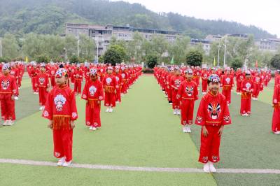如今,该校大课间时间,学生们在完成了校园集体舞运动后,总会来一段《说唱脸谱》。台上,戏曲老师领带演员领演,台下,几百学生戴着脸谱学习一招一式。(视界网 张云朝 皮兴飞摄)