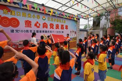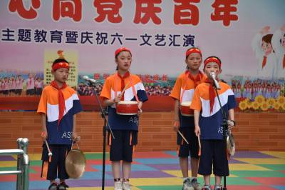 活动中,孩子们载歌载舞,表演了歌舞、相声、三句半、情景剧、朗诵等丰富多彩的节目,同步举行了少先队新队员入队仪式,该校32名同学光荣地加入中国少年先锋队这个大集体。
