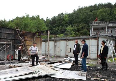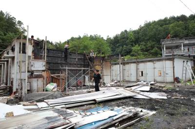 5月31日,咸丰县烤房建设负责人在黄金洞乡石家坝村大堡烤房群指导烤房维修工作,加快该县投资300多万元修复的230多栋烤房施工进度。