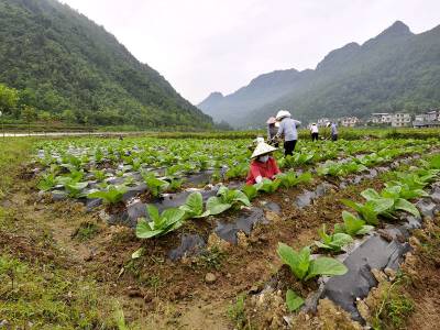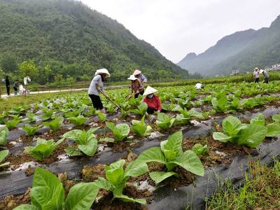 本网讯(通讯员 潘家文 邓婷)5月31日来凤县大河镇黔江洞村村民在给印尼雪茄种植大户王桂英的烟株进行培土管理。