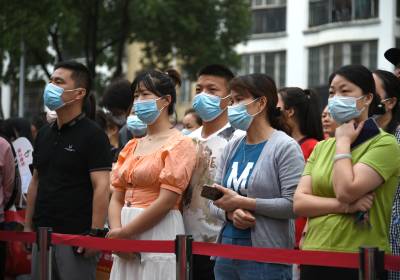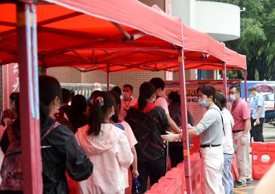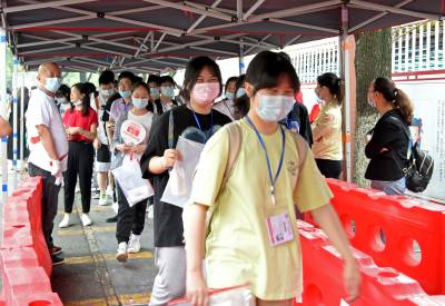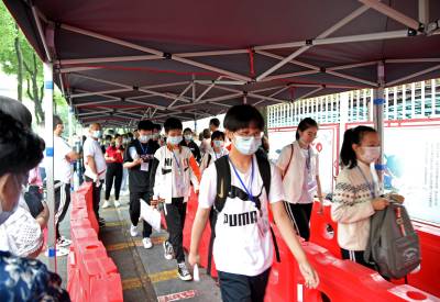 2021年6月20日,中考首日在吴家山第三中学考点门前,考生通过测温进入考点,秩序井然。当日武汉市约7.53万名初中毕业生迎来2021年武汉中考,东西湖区有4000余名初中毕业生参加此次中考。(湖北日报全媒记者 倪娜 摄